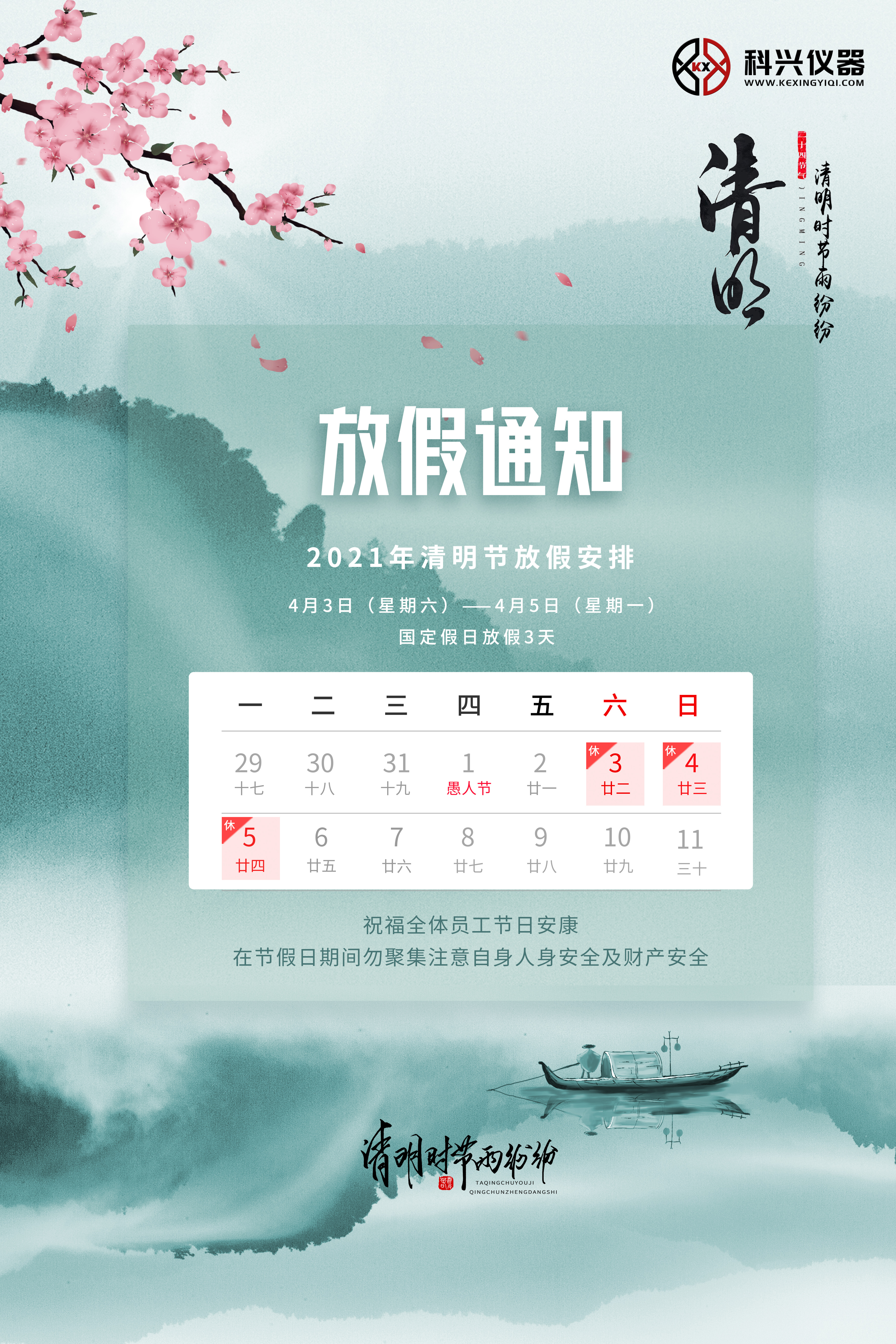 科興儀器2021年清明節(jié)放假通知